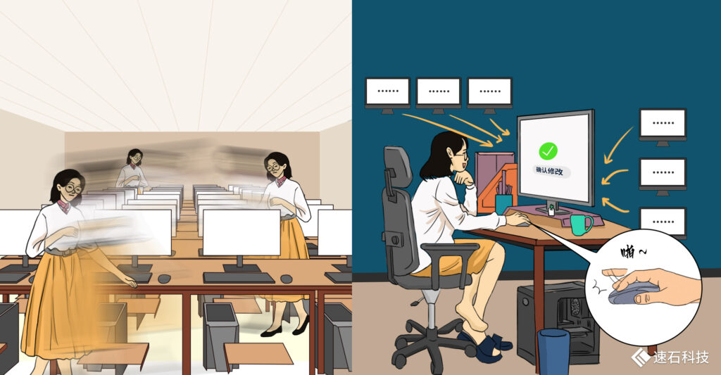 以往,這項(xiàng)工作需要老師在課前花費(fèi)大量時(shí)間,在不同機(jī)器上一一手動(dòng)配置完成,既費(fèi)時(shí)又費(fèi)力。