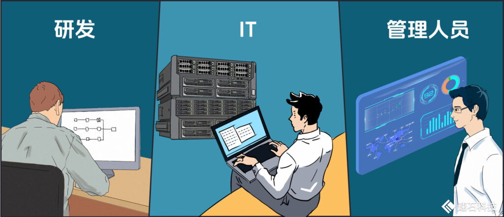 而芯片設(shè)計(jì)研發(fā)場景下,使用人群一般有三種:研發(fā)、IT、管理人員。